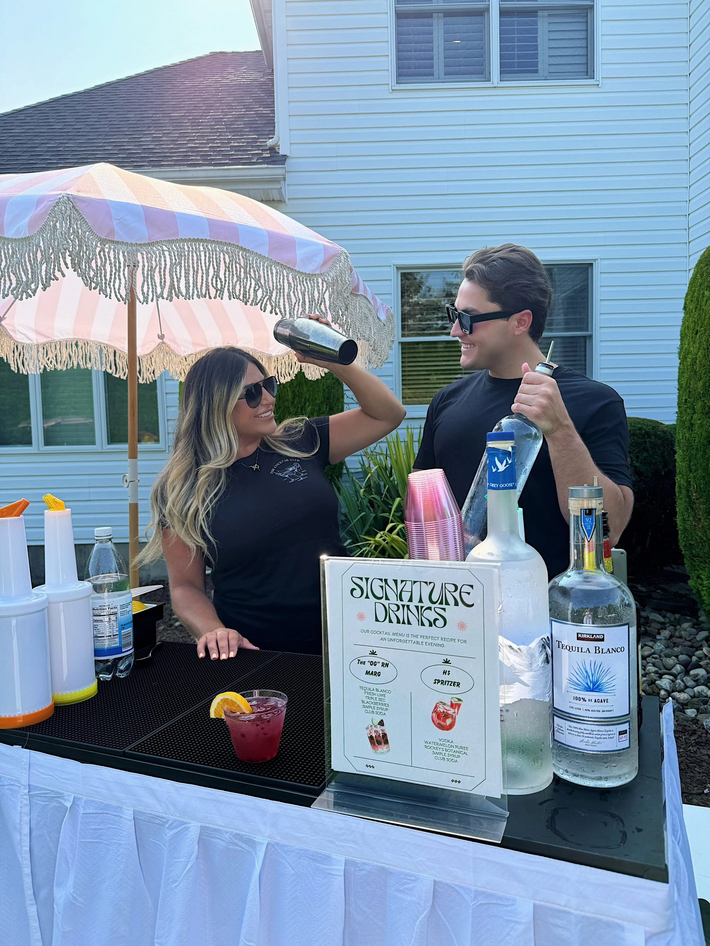 Per NJ state law, we operate as a “dry hire”—meaning you supply the alcohol. Don’t stress though—we’ll guide you every step of the way to make sure your bar is stocked and your guests are sipping happily.